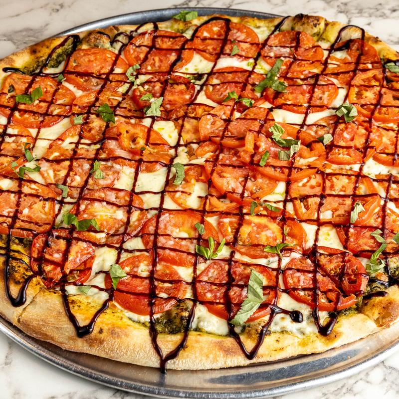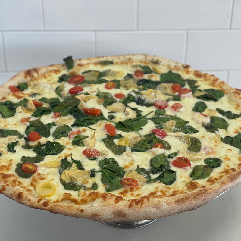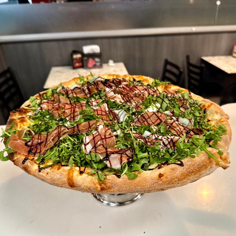 Premium toppings: Artichokes, Grilled Chicken, Steak, Hot Soppressata, Grilled Shrimp, Prosciutto, Meatballs, Roasted Red Peppers, Arugula, Vegan Mozzarella