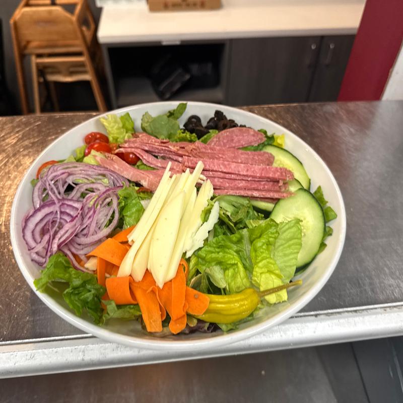 Proteins: Steak +$7.00 | Grilled Chicken +$7.00 | Fried Chicken Cutlet +$8.50 | Grilled Shrimp +$8.00 • Dressings: House Italian, Lite Italian, Bleu Cheese, Ranch, French, Greek, Honey Dijon, Thousand Island, Caesar