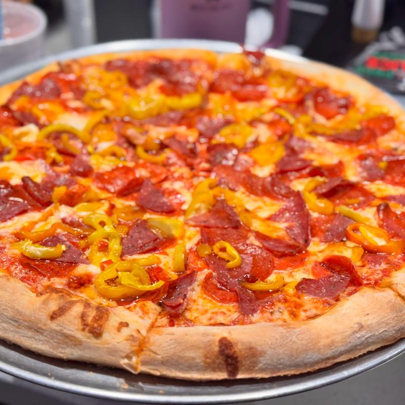 Toppings: Pepperoni, Sausage, Mushrooms, Onions, Ham, Black Olives, Tomatoes, Green Peppers, Hot Peppers, Anchovies, Bacon, Extra Cheese, Spinach, Jalapenos, Pineapple